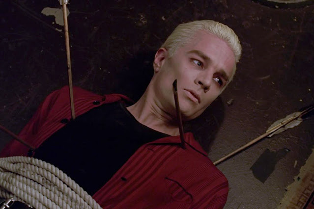 Buffy is determined to host a “normal” Thanksgiving for once, naturally, that plan falls apart the moment an Indigenous vengeance spirit appears in Sunnydale, forcing her and the Scooby Gang back into crisis mode. The highlight of the episode is a wonderfully over-the-top showdown where Xander, Anya, and Giles scramble to fight off the arrow-slinging spirit, all while Spike sits tied to a chair offering snarky commentary. Instead of pure horror, the whole thing leans into comedic supernatural chaos. It wraps up with an awkward dinner moment when Xander accidentally reveals that Buffy had an unexpected visitor she didn’t notice: her brooding ex, Angel.